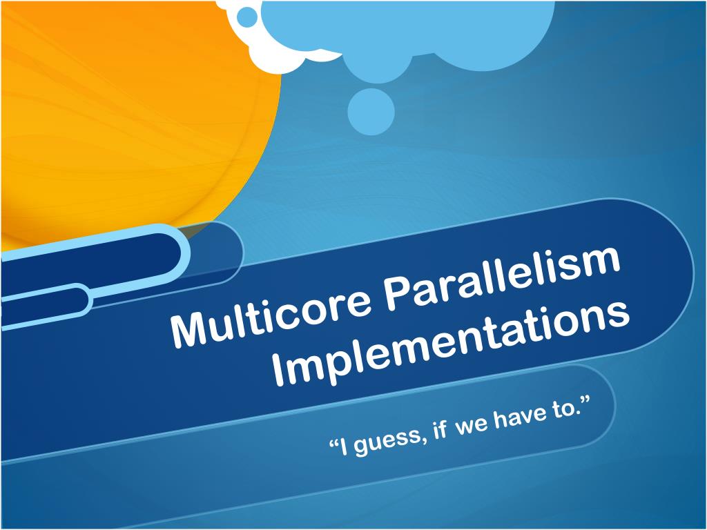 Multicore Parallelism Implementations “I guess, if we have to.”