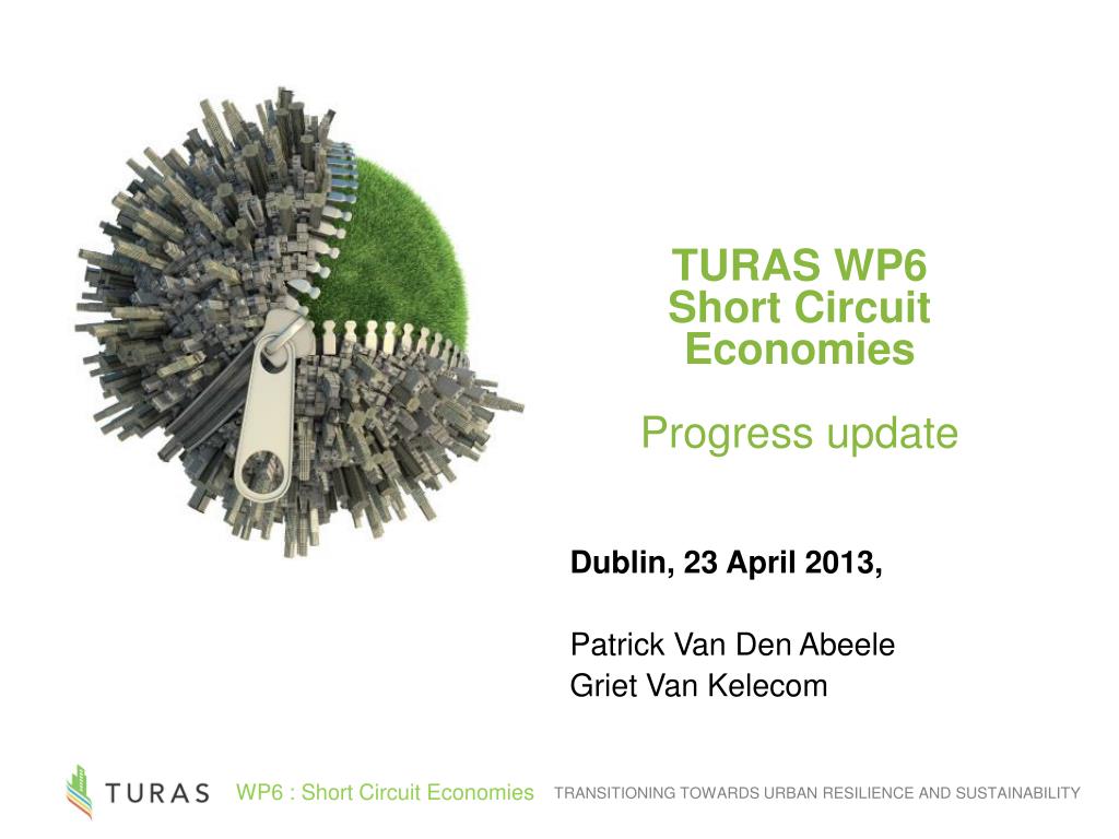 TURAS WP6 Short Circuit Economies Progress update. Dublin, 23 April 2013, Patrick Van Den Abeele Griet Van Kelecom. WP6 : Short Circuit Economies. WP6 overall objective . Exploring business activities that can make our urban economies more resilient : No impact on the environment