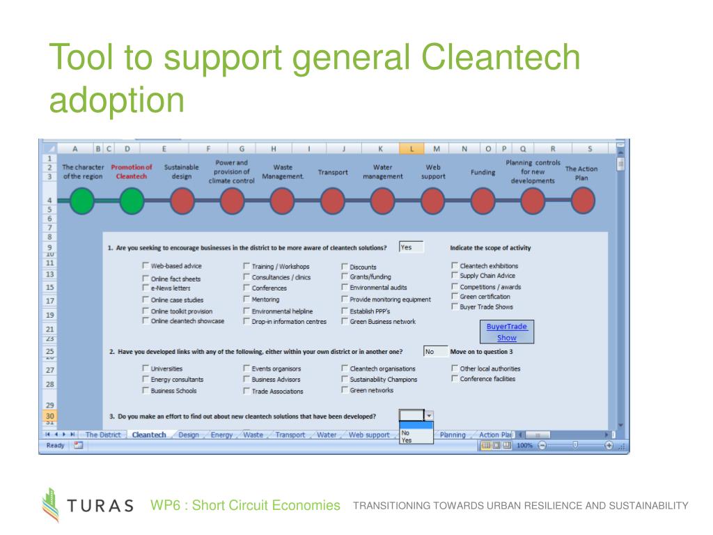 Tool to support general Cleantech adoption WP6 : Short Circuit Economies