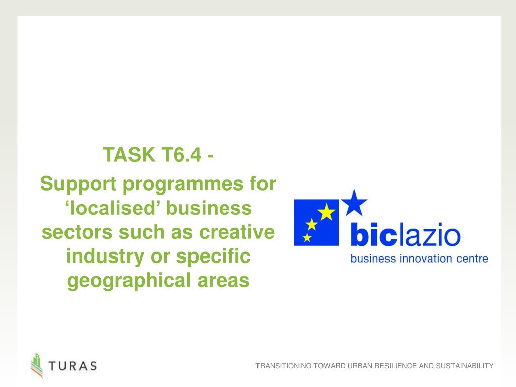 TASK T6.4 - Support programmes for ‘localised’ business sectors such as creative industry or specific geographical areas