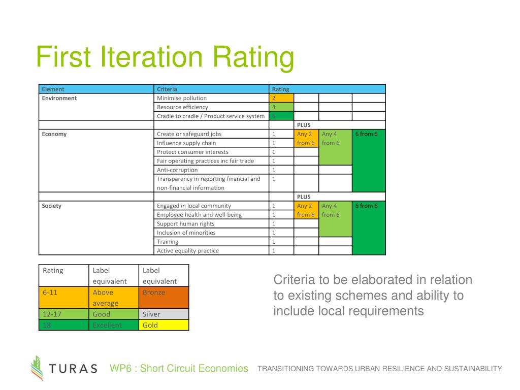 First Iteration Rating Criteria to be elaborated in relation to existing schemes and ability to include local requirements WP6 : Short Circuit Economies