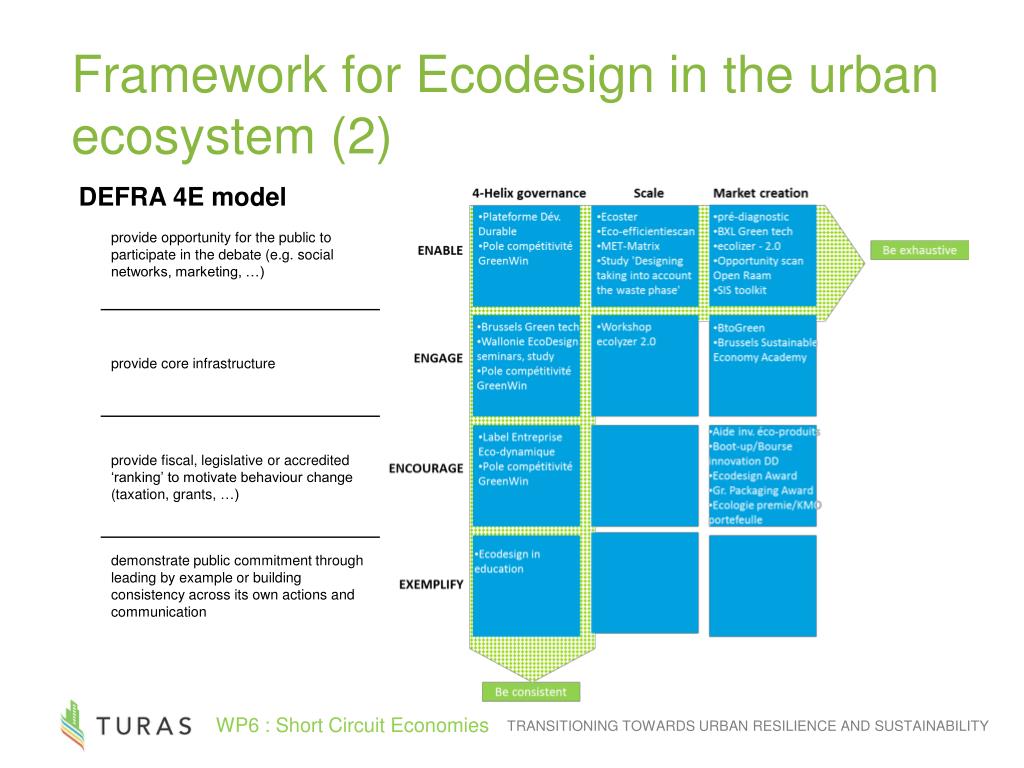 Framework for Ecodesign in the urban ecosystem (2) DEFRA 4E model WP6 : Short Circuit Economies