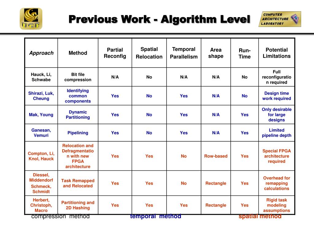 Previous Work - Algorithm Level compression methodtemporal methodspatial method