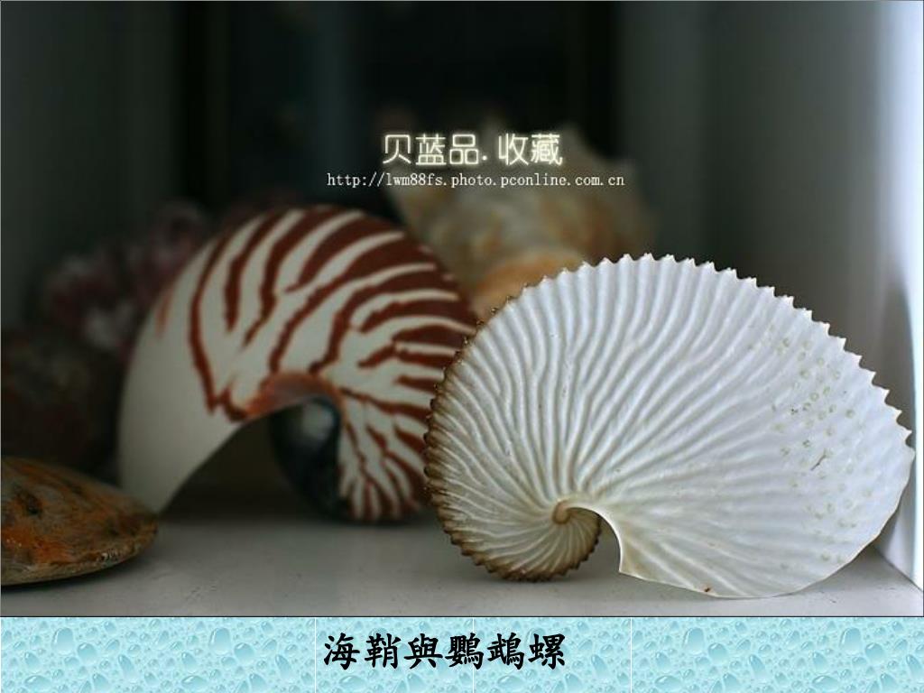 貝殼珍品欣賞. 相冊. 由 HomePC 創建. E-mail 文化傳播網 www.52e-mail.com. 貝殼是一種天然的藝術品,它以奇特的形狀,精美的圖案和絢麗的色彩吸引了眾多的收藏者。. 海鞘與鸚鵡螺. 中美海菊蛤 分佈在加利福尼亞灣至秘魯的巴拿馬區 。. 大理石芋螺、地圖寶螺、阿拉伯寶螺、笠螺. 女王鳳凰螺 分佈在美國佛羅里達至西印度群島。. 長鼻螺和馬丁長鼻螺 分佈在太平洋西南部深海底。. 黃玉螺(麵包螺). 純色海菊蛤 分佈在熱帶印度太平洋 。. 臺灣白棗螺 頭盾目阿地螺科. 馬丁長鼻螺