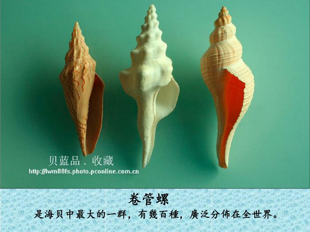 卷管螺 海貝中最大的一群,廣泛分佈全世界有幾百種。