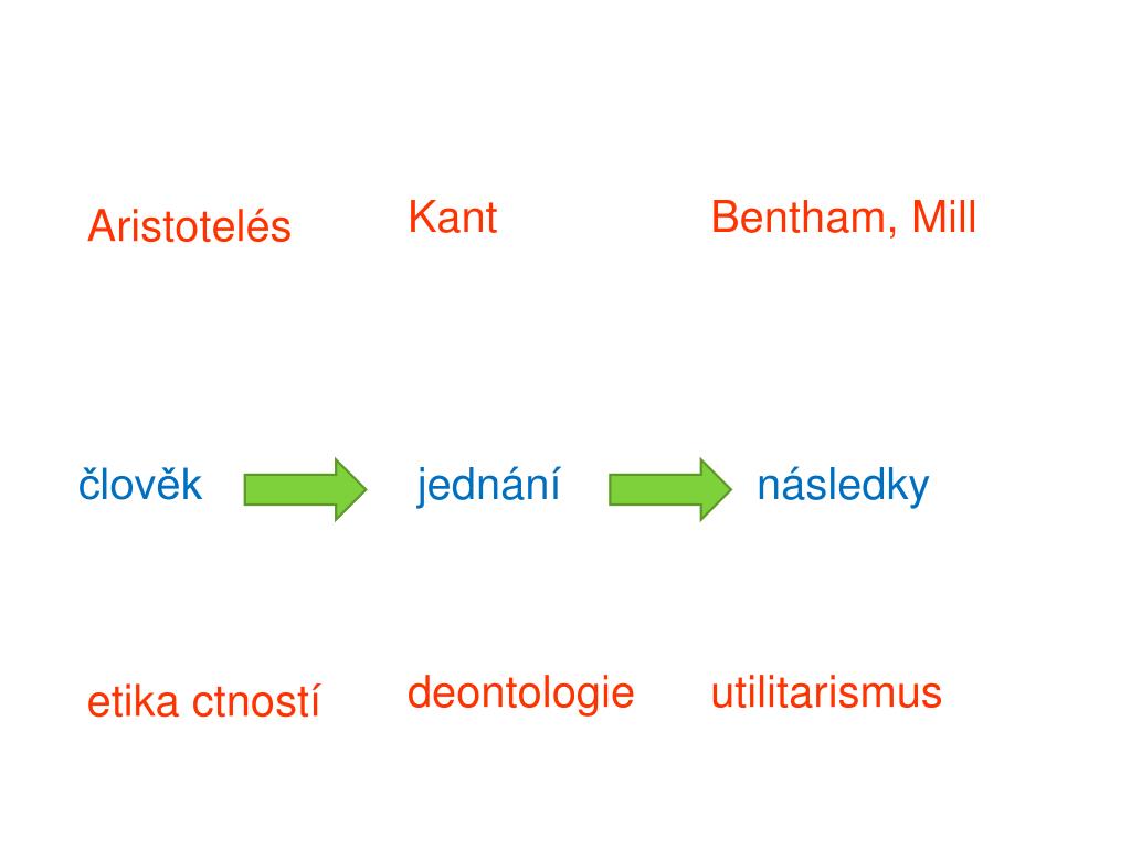 Kant deontologie Bentham, Mill utilitarismus Aristotelés etika ctností člověk jednání následky