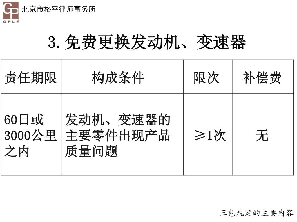 3.免费更换发动机、变速器 三包规定的主要内容