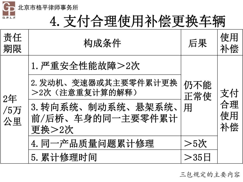 4.支付合理使用补偿更换车辆 三包规定的主要内容