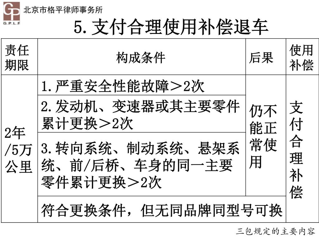 5.支付合理使用补偿退车 三包规定的主要内容