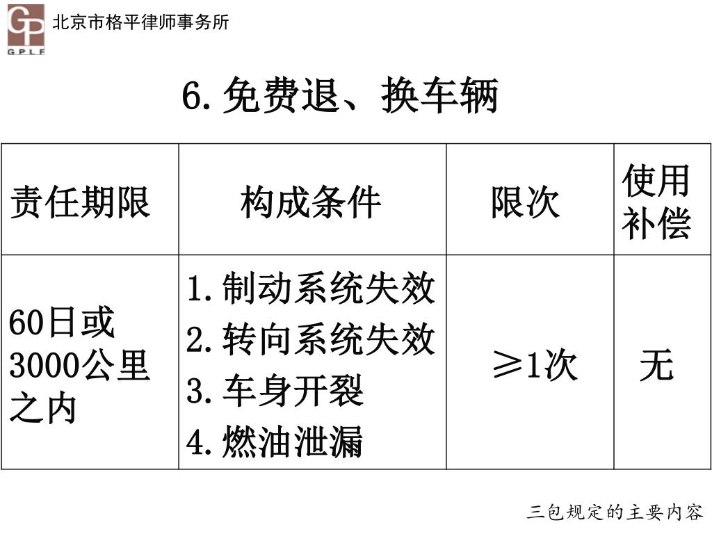 6.免费退、换车辆 三包规定的主要内容