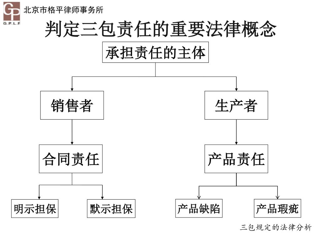 判定三包责任的重要法律概念 承担责任的主体 销售者 生产者 合同责任 产品责任 产品缺陷 产品瑕疵 明示担保 默示担保 三包规定的法律分析