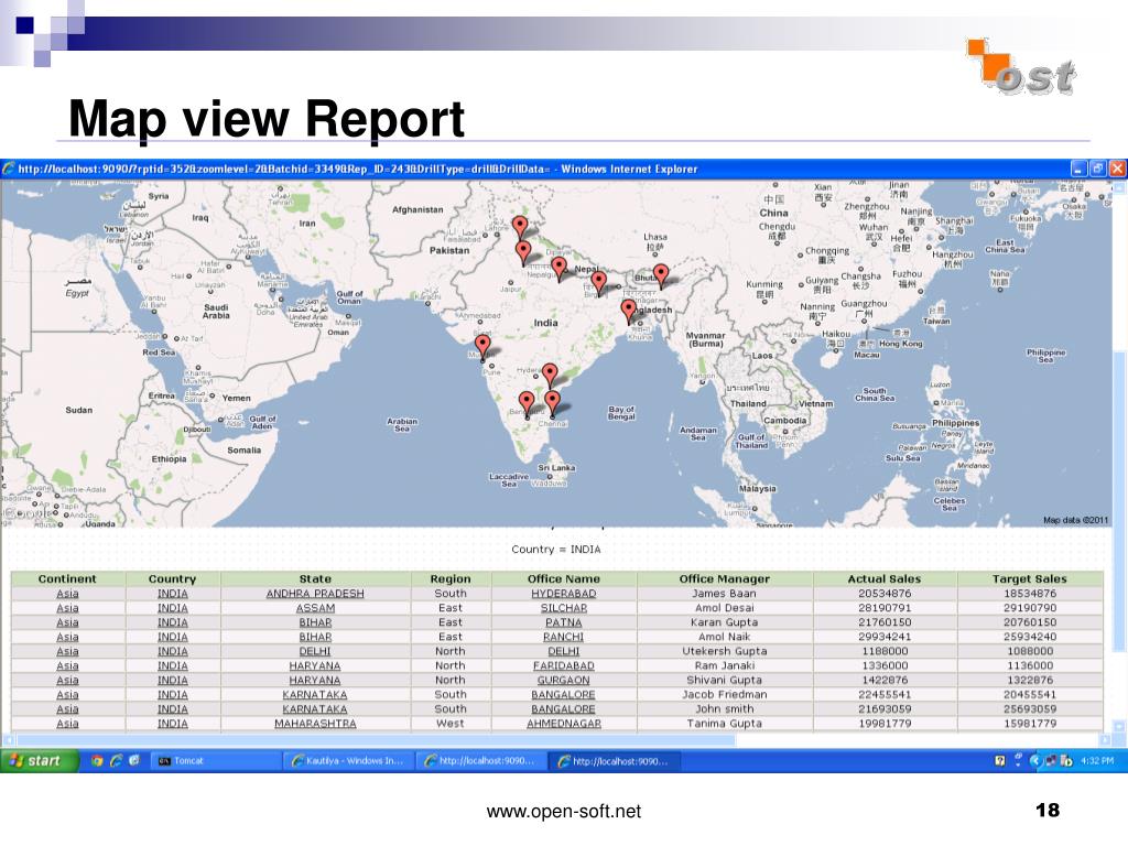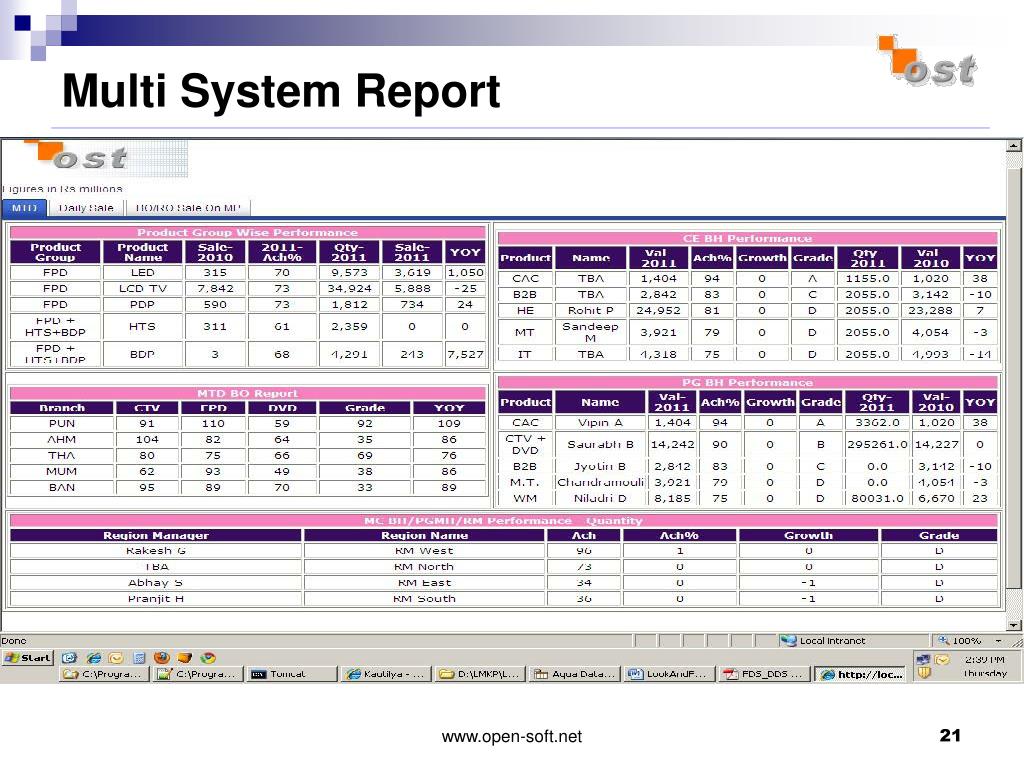 Report Snapshots OST has designed various types of reports for various customers These reports use different templates which makes building them a very easy and smooth process It adds many pre built flexibility to the end user Some of the sample reports and analytics built are showcased www.open-soft.net