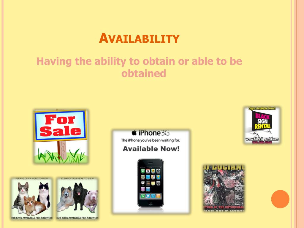 Workplace Vocabulary 13. Availability, Bargain, Bar Code, Distribution and Invoice. Availability. Having the ability to obtain or able to be obtained. Bargain. A good deal. A good buy. Bar Code.