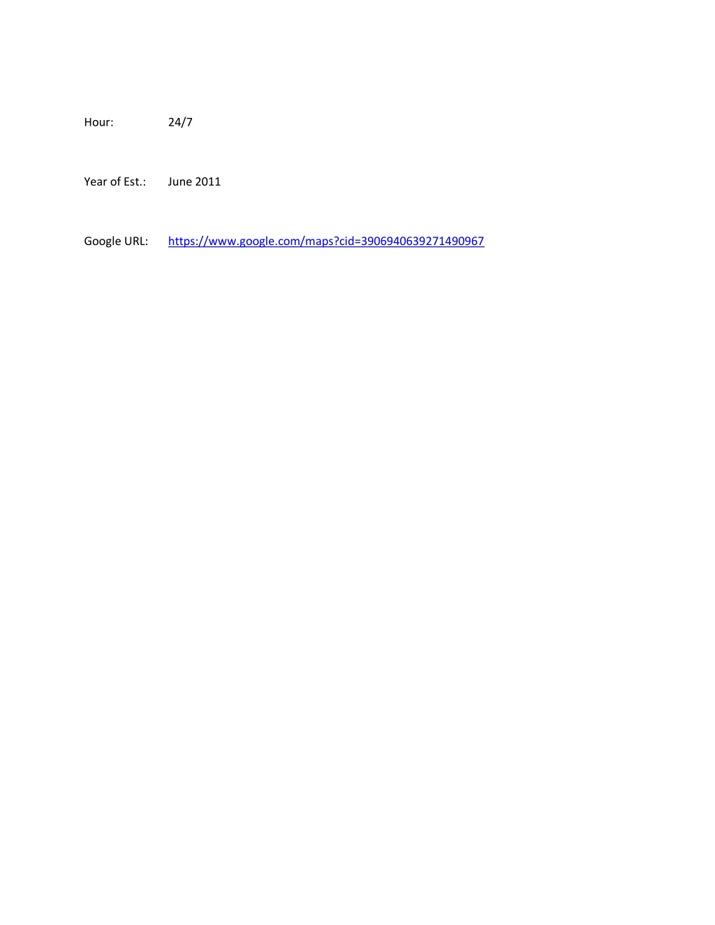 Hour: 24/7 Year of Est.: June 2011 Google URL: https://www.google.com/maps?cid=3906940639271490967