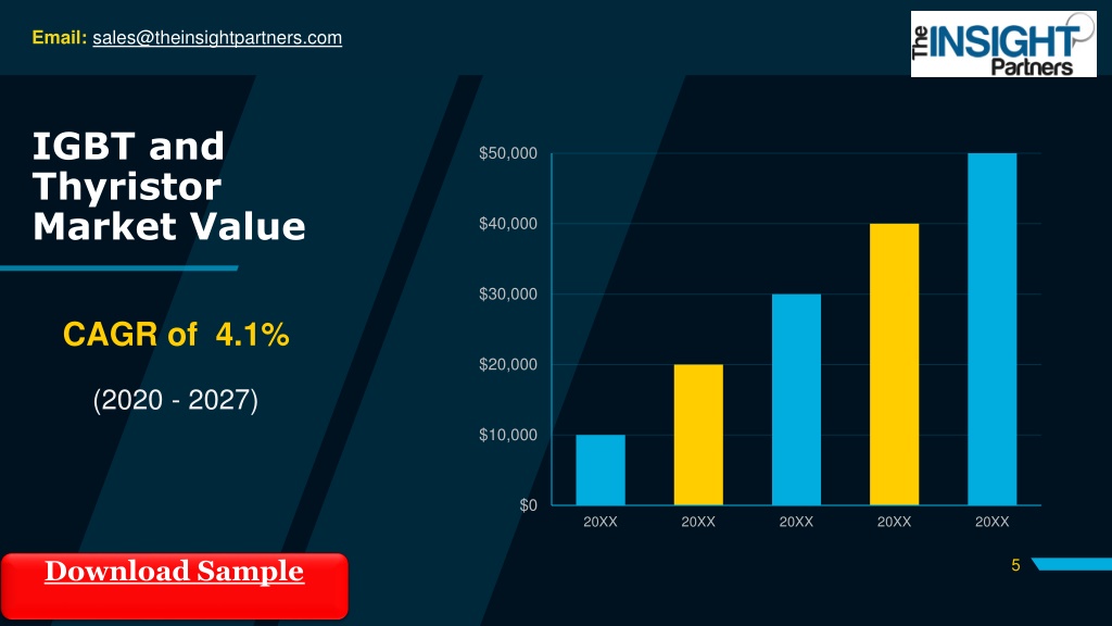 Email: sales@theinsightpartners.com IGBT and Thyristor Market Value $50,000 $40,000 $30,000 CAGR of 4.1% $20,000 (2020 - 2027) $10,000 $0 20XX 20XX 20XX 20XX 20XX Download Sample 5