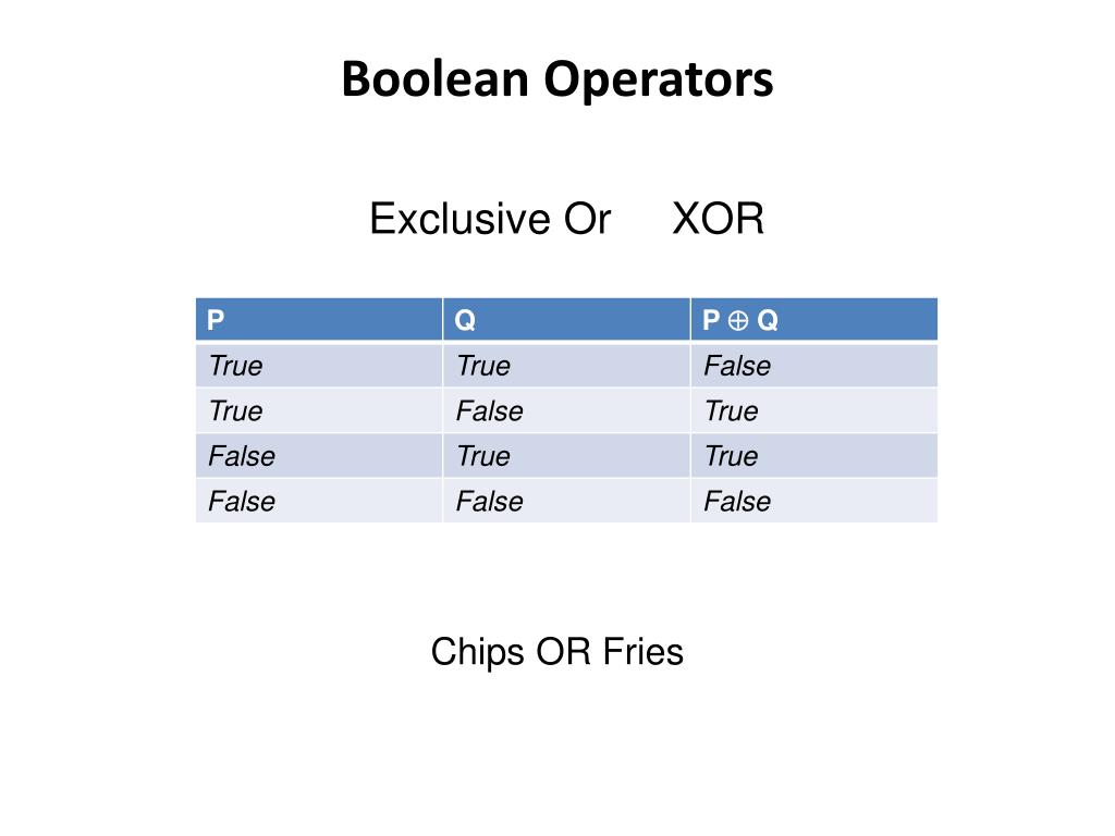 Boolean Operators Exclusive Or XOR Chips OR Fries