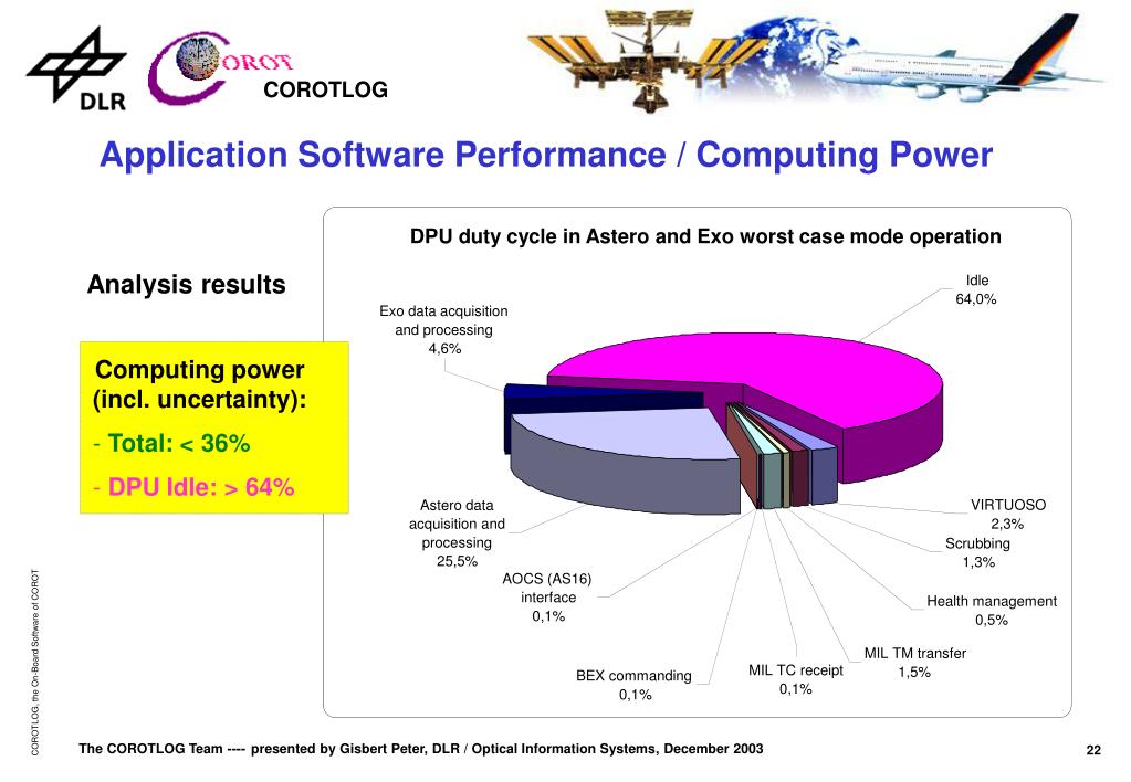 COROT CNES/LESIA. COROTLOG - the On-Board Software. as German contribution for the COROT satellite. 1 0. 0 1. Developed by DLR , Ingenieurbüro Ulmer and CLIPhIT. Presented by Gisbert Peter, DLR/Optical Information Systems Tel.: +493067055382, Email: Gisbert.Peter@dlr.de.