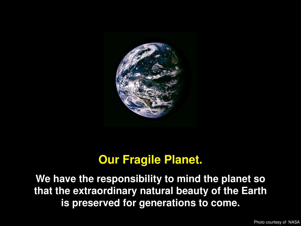 Our Fragile Planet. We have the responsibility to mind the planet so that the extraordinary natural beauty of the Earth is preserved for generations to come. Heliocentris: Science education through fuel cells 22 Photo courtesy of NASA