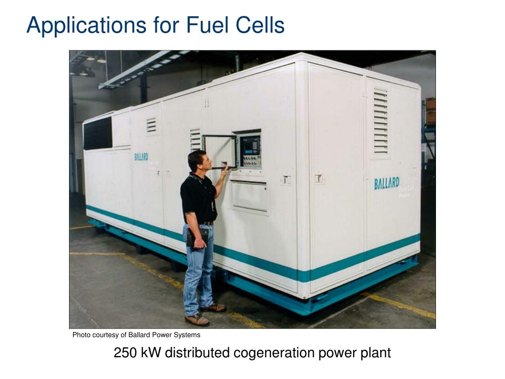 Applications for Fuel Cells Distributed power stations Photo courtesy of Ballard Power Systems 250 kW distributed cogeneration power plant