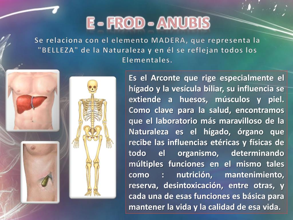 E - FROD - ANUBIS Se relaciona con el elemento MADERA, que representa la "BELLEZA" de la Naturaleza y en él se reflejan todos los Elementales.