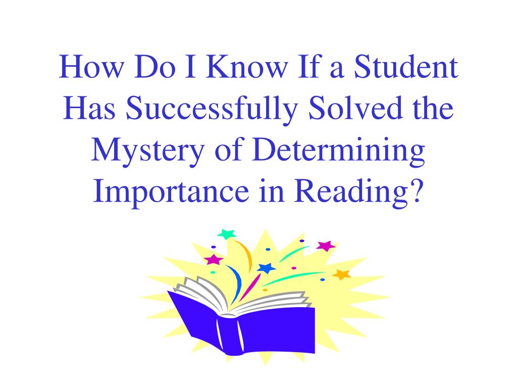 How Do I Know If a Student Has Successfully Solved the Mystery of Determining Importance in Reading?