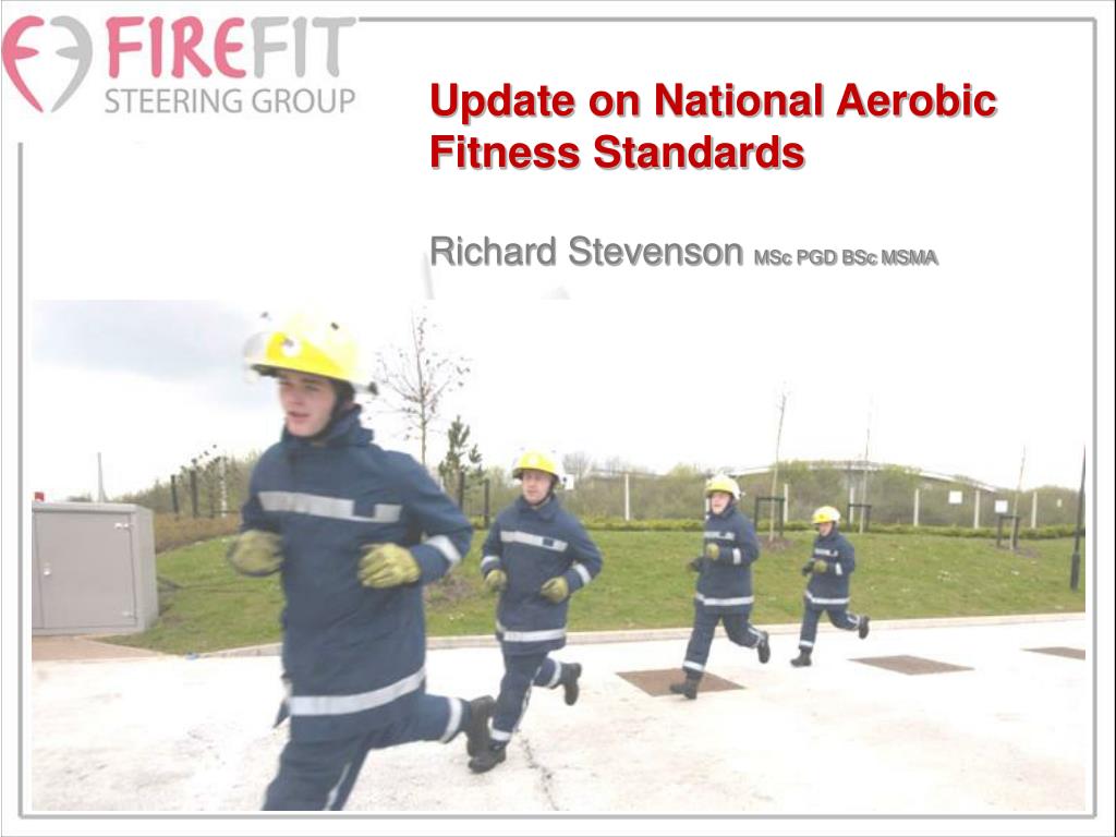 Update on National Aerobic Fitness Standards Paul Hancock, Deputy Chief Fire Officer Chief Fire Officer Association John McGhee, FBU National Officer Fire Brigade Union Paul Wilsher & Rich Stevenson FireFit Steering Group