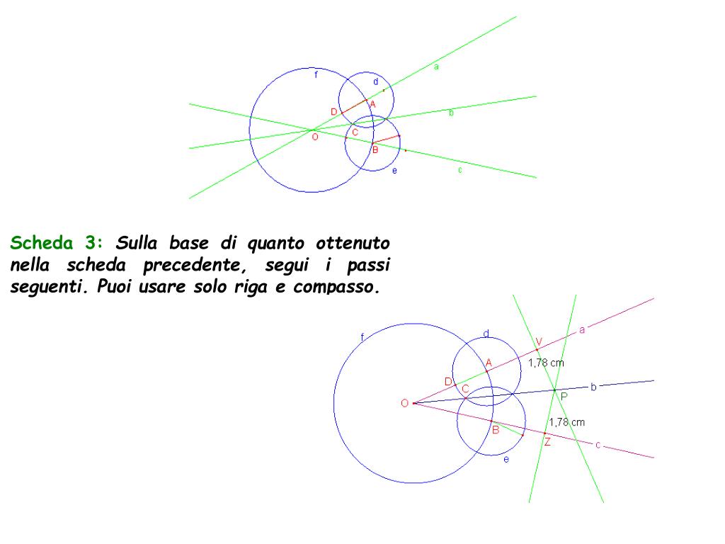 Scheda 3:Sulla base di quanto ottenuto nella scheda precedente, segui i passi seguenti. Puoi usare solo riga e compasso.