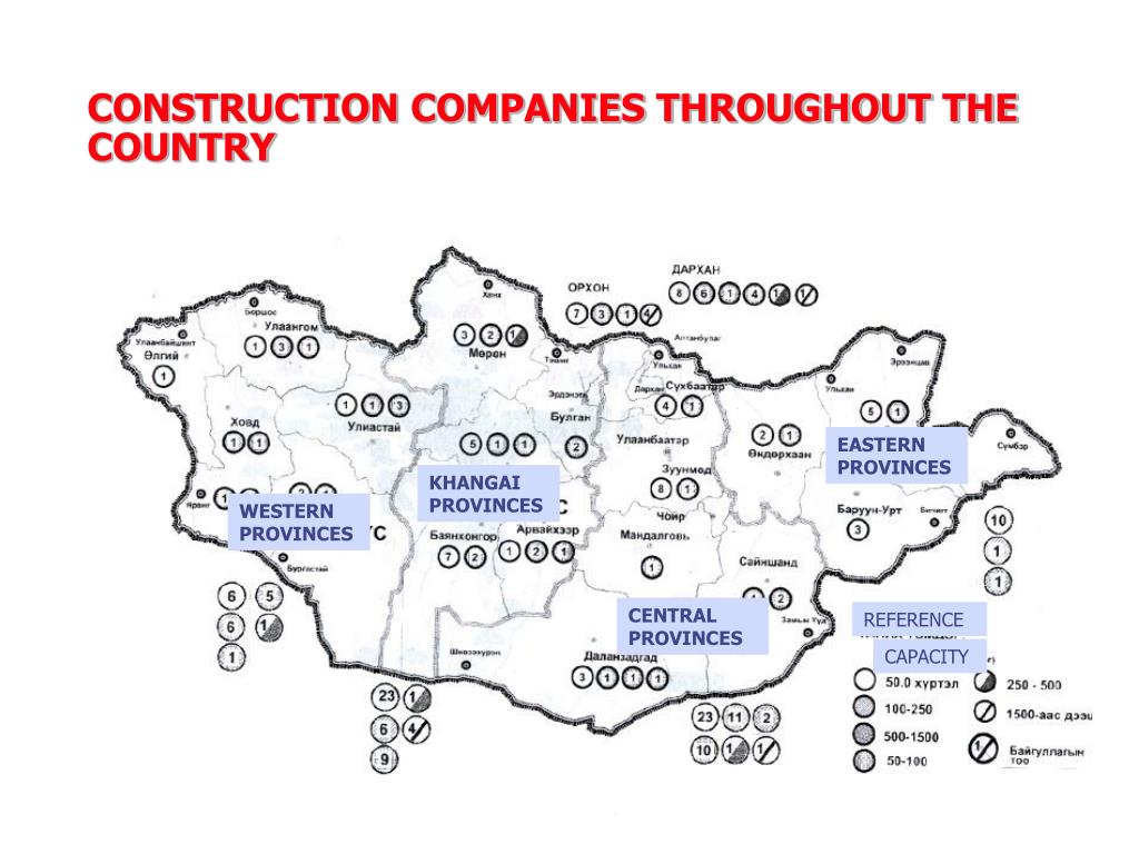 CONSTRUCTION COMPANIES THROUGHOUT THE COUNTRY EASTERN PROVINCES KHANGAI PROVINCES WESTERN PROVINCES CENTRAL PROVINCES REFERENCE CAPACITY