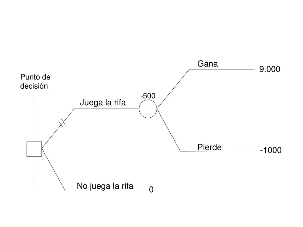 Gana 9.000 Punto de decisión -500 Juega la rifa Pierde -1000 No juega la rifa 0