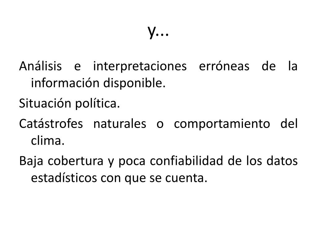 y... Análisis e interpretaciones erróneas de la información disponible. Situación política. Catástrofes naturales o comportamiento del clima. Baja cobertura y poca confiabilidad de los datos estadísticos con que se cuenta.