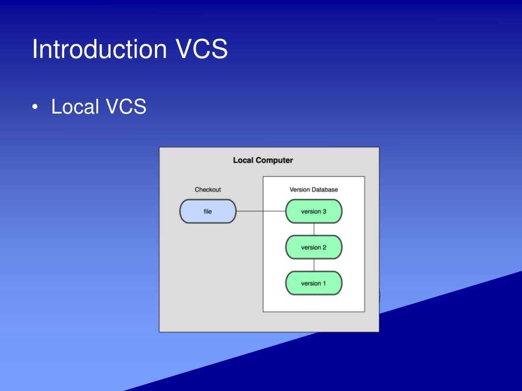 Introduction VCS • Centralized VCS • Subversion (SVN) • checkout • update • commit