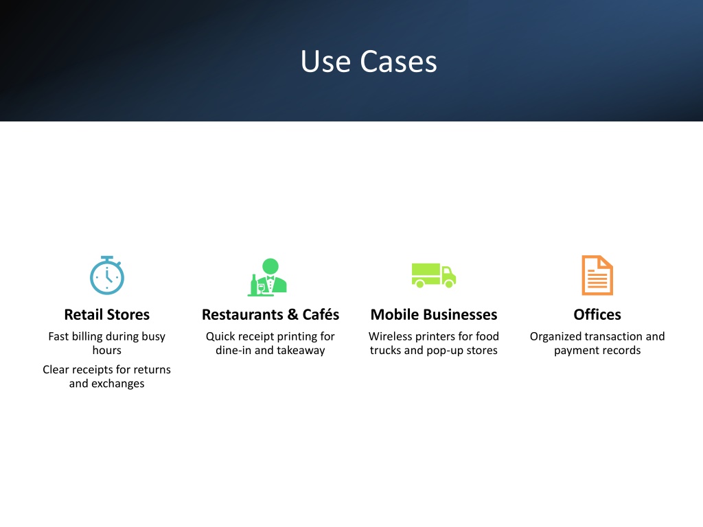 Modern Receipt Printers • Modern receipt printers play a crucial role in speeding up billing operations at POS counters. With faster print speeds, reliable performance, and seamless POS integration, these printers help businesses serve customers efficiently while maintaining accurate transaction records. This presentation explores how modern receipt printers improve checkout speed and overall business productivity.