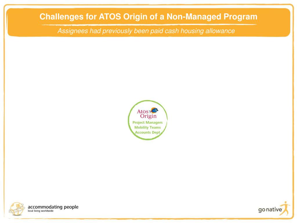 Challenges for ATOS Origin of a Non-Managed Program Assignees had previously been paid cash housing allowance