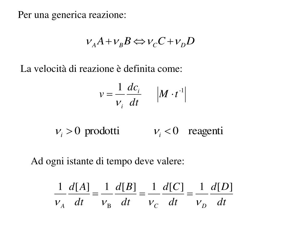 Per una generica reazione: La velocità di reazione è definita come: Ad ogni istante di tempo deve valere: