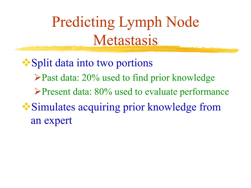 Predicting Lymph Node Metastasis • Split data into two portions • Past data: 20% used to find prior knowledge • Present data: 80% used to evaluate performance • Simulates acquiring prior knowledge from an expert