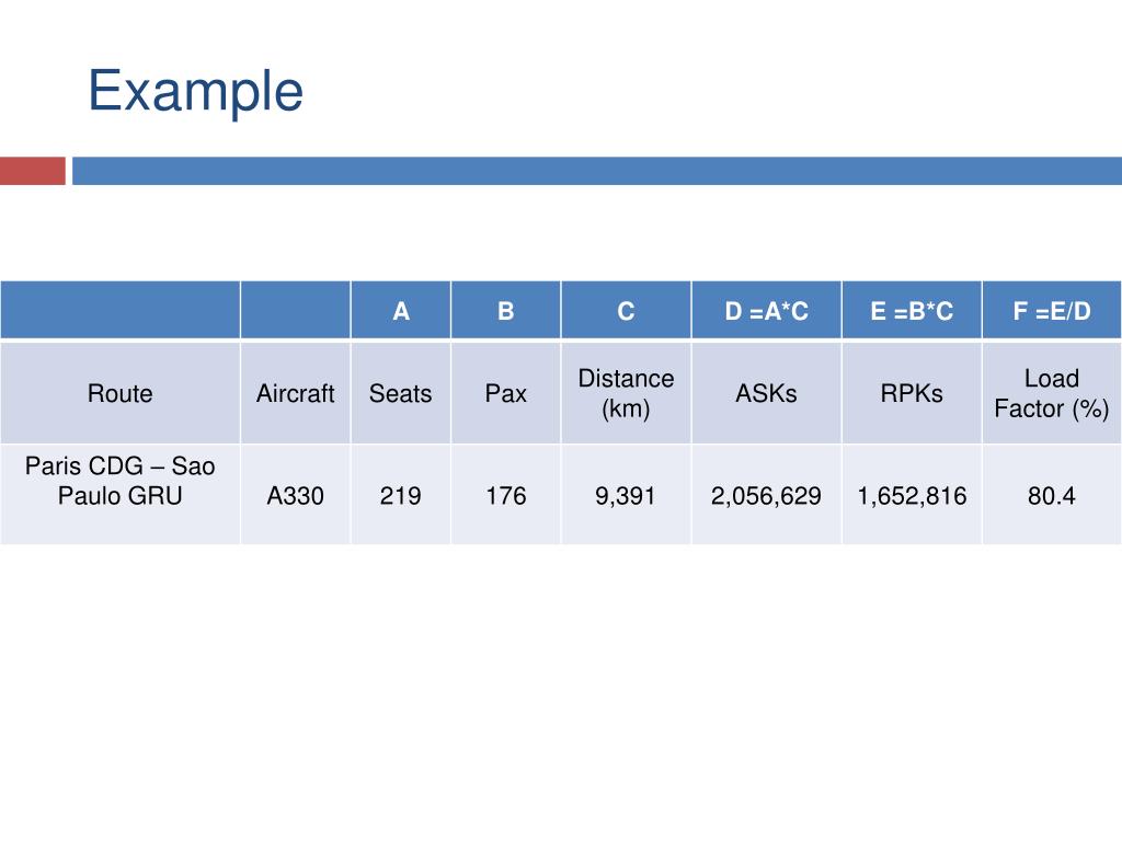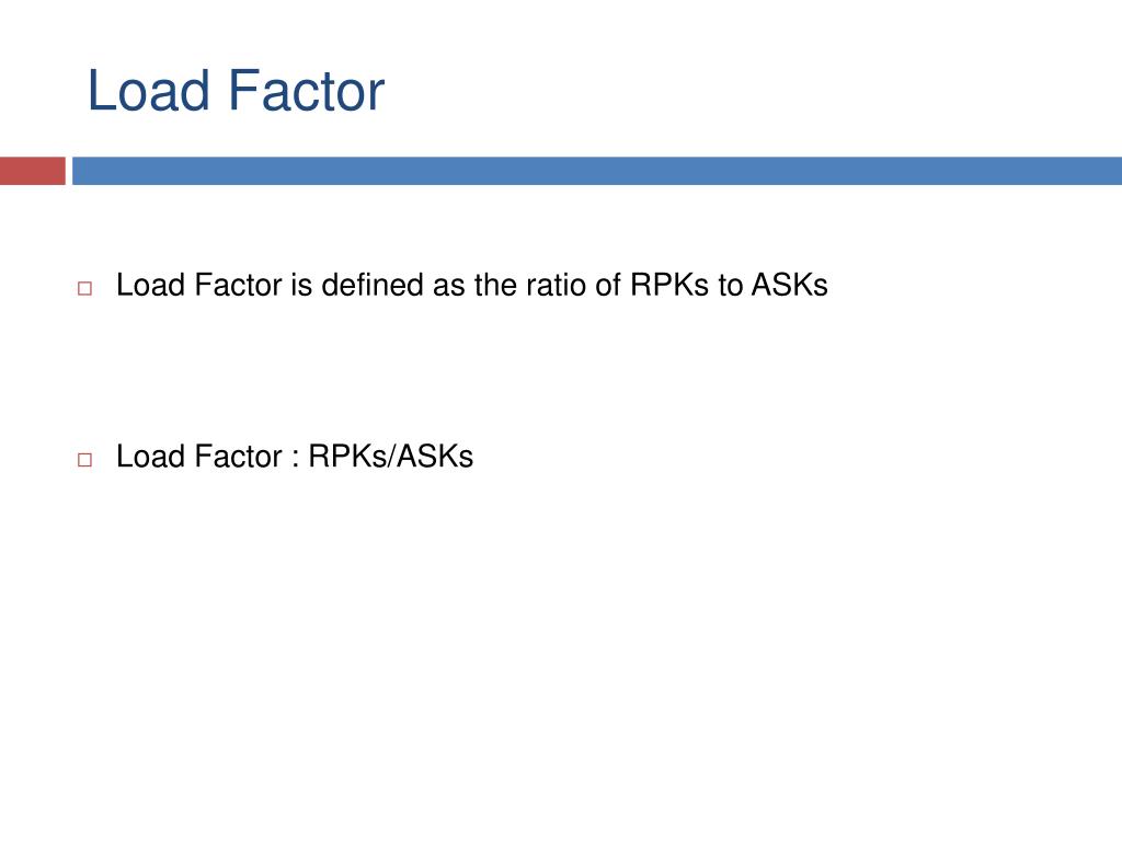 Load Factor • Load Factor is defined as the ratio of RPKs to ASKs • Load Factor : RPKs/ASKs