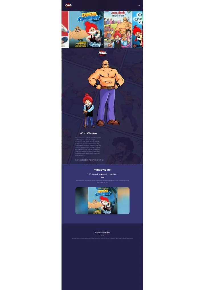 Who We Are We create and produce animation series and ?lms production As a multi disciplinary craft production As a multi disciplinary As a multi disciplinary craft organization devoted to the support Our services and programs provide support for craft artists at As a multi disciplinary craft organization all career levels while to, and growing appreciation characters and cartoon IP Cartoonist Creative Craftmanship What we do 1. Entertainment Production We specialize in creative and entertaining animation and live-action content around our character IPs. 2 Merchandies We sell merchandise and consumer products through quirky designs and styles of our characters.