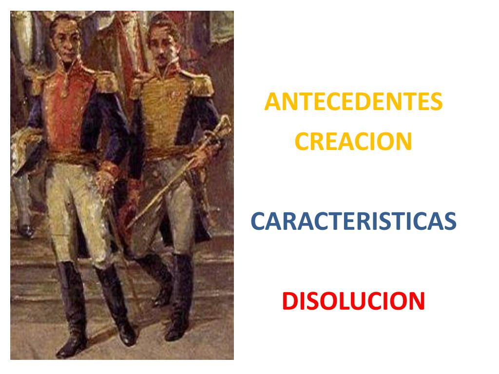 ANTECEDENTES Los patriotas lograban liberarse de los Españoles, pero estos intentaban de nuevo re-conquistarlos; porque las nuevas naciones eran pequeñas, débiles y desorganizadas. Simón Bolívar entendió que para librarse totalmente de los Españoles y garantizar una libertad definitiva debían unificar todas las naciones en una sola y crear un gran país, con un gobierno centralizado, poderoso y organizado, que incluyera a La Capitanía de Venezuela, El Virreinato del Nuevo Reino de Granada, Presidencia de Quito y La Provincia libre de Guayaquil. Esto corresponde a los actuales Colombia, Ecuador, Panamá, Venezuela y otros territorios que pasaron a Brasil, Perú, Nicaragua y una de las Guyanas.