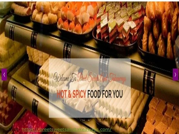 Preet Sweets And Takeaways has redefined the Indian cuisine serving the real authentic taste of Indian dishes in Tauranga. The chefs are having years of experiences serve the best appetizing dishes at Preet Sweets and Takeaways, which brings the true authentic taste and flavour. Visit- https://preetsweetsandtakeaways.com/ Preet Sweets And Takeaways