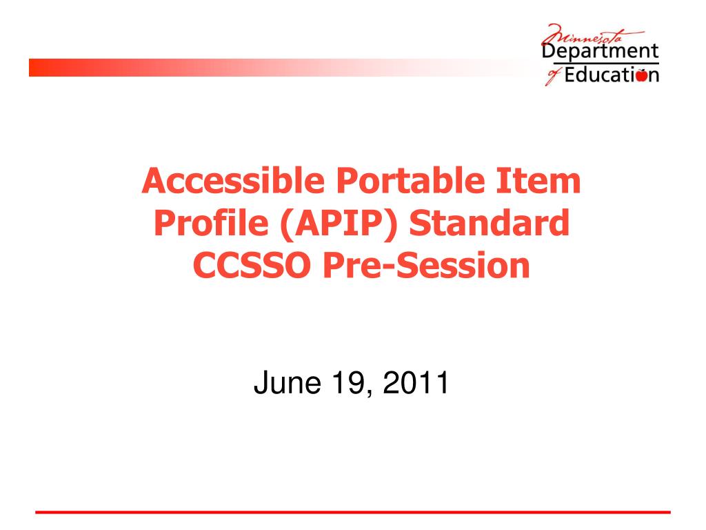 Accessible Portable Item Profile (APIP) Standard CCSSO Pre-Session June 19, 2011