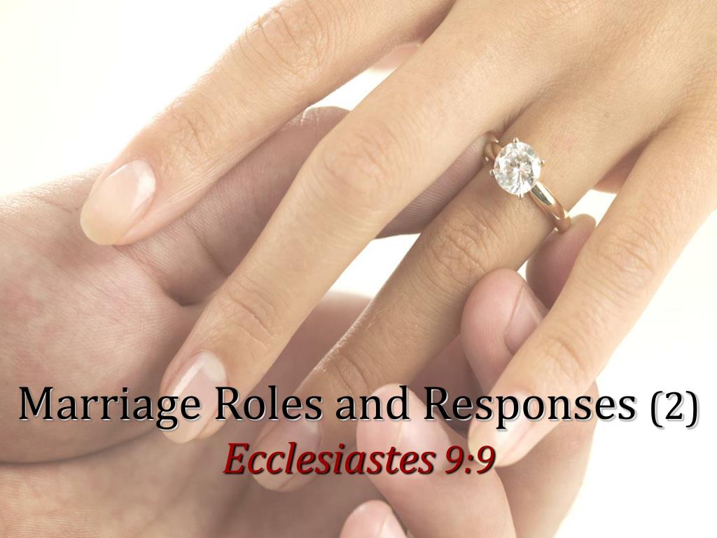 Marriage Roles and Responses (2) Ecclesiastes 9:9. Marriage. “The Bible sets forth specific and distinct roles for a husband and wife that must be accurately understood and practically fulfilled.” - Preparing for Marriage , Dennis Rainey, editor, 163. Marriage.