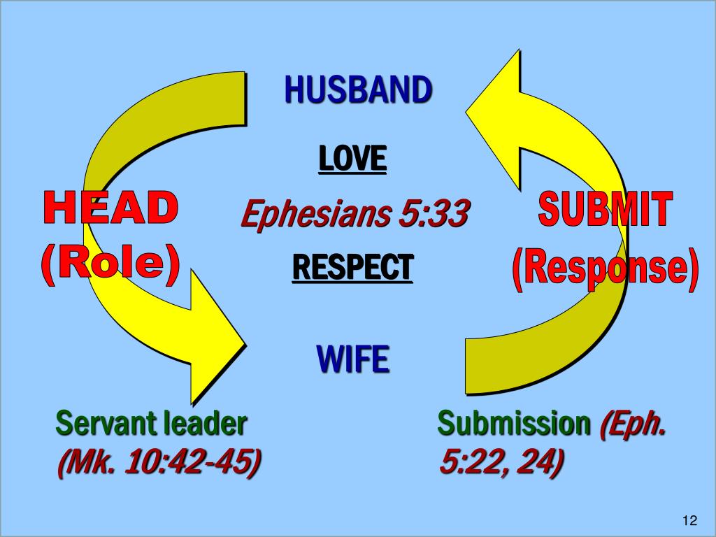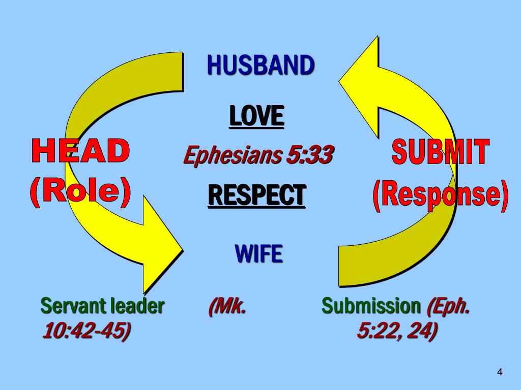 HUSBAND LOVE Ephesians 5:33 RESPECT HEAD (Role) SUBMIT (Response) WIFE Servant leader(Mk. 10:42-45) Submission(Eph. 5:22, 24)