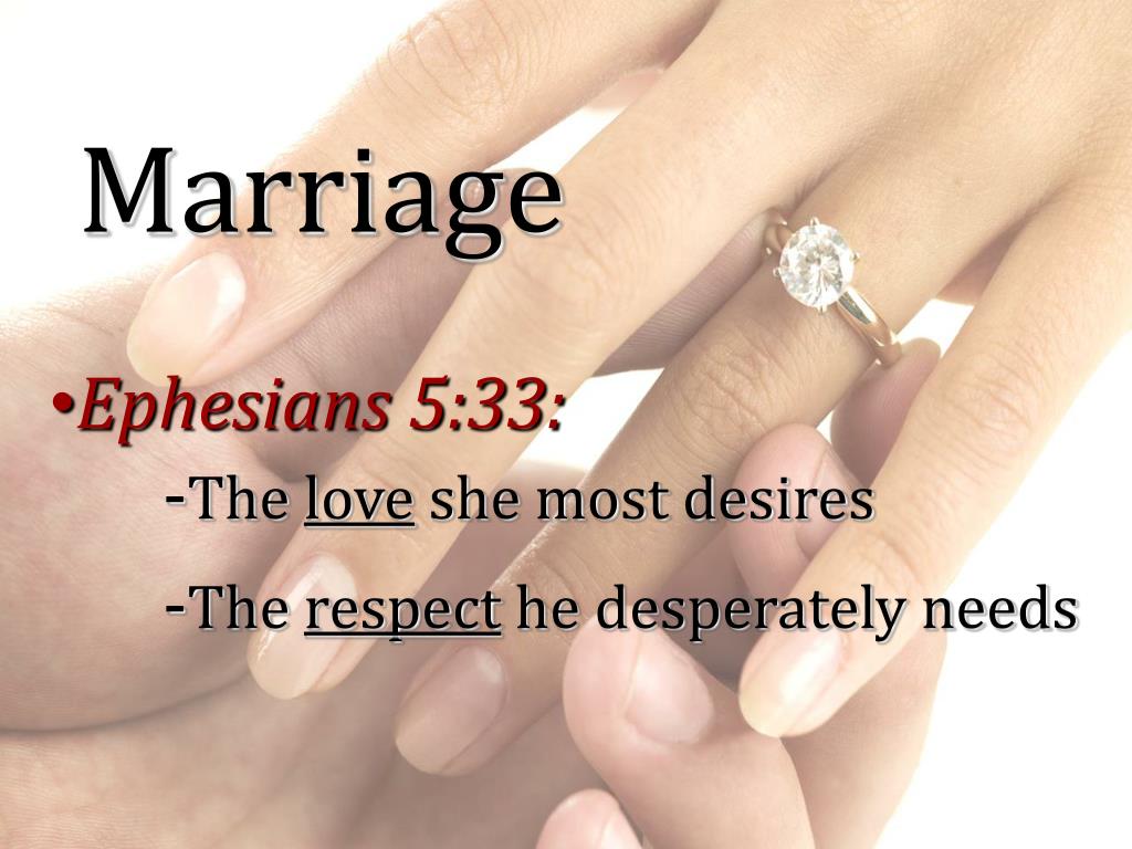 Marriage • Ephesians 5:33:-The love she most desires -The respect he desperately needs