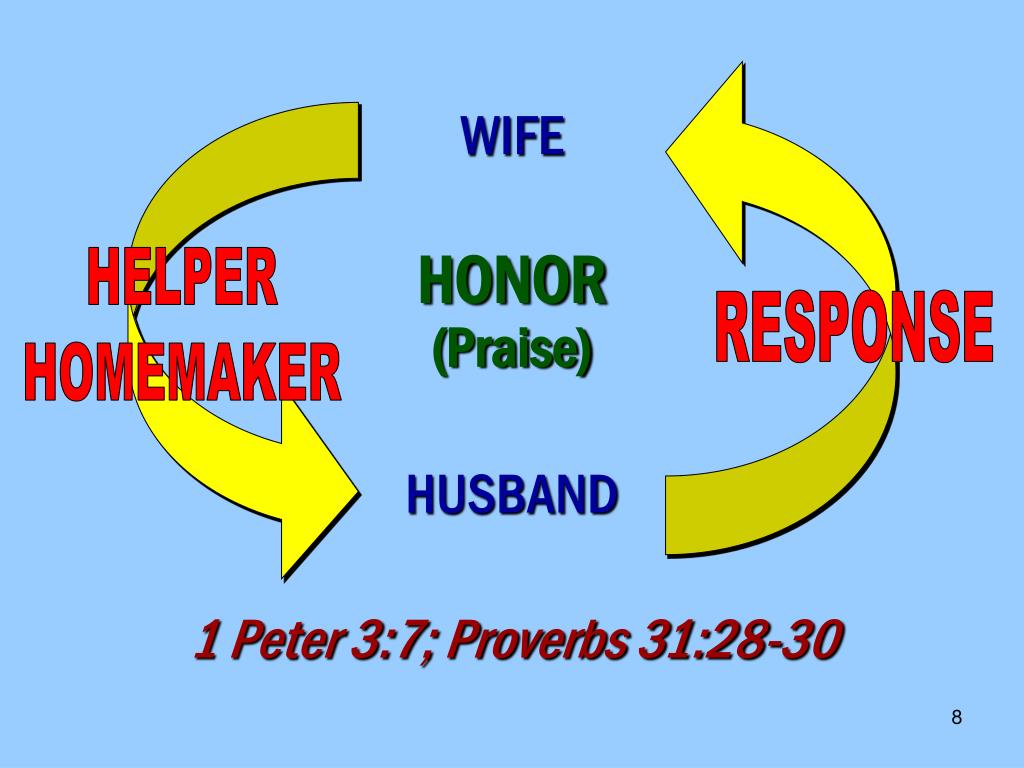 WIFE HONOR(Praise) HELPER HOMEMAKER RESPONSE HUSBAND 1 Peter 3:7; Proverbs 31:28-30