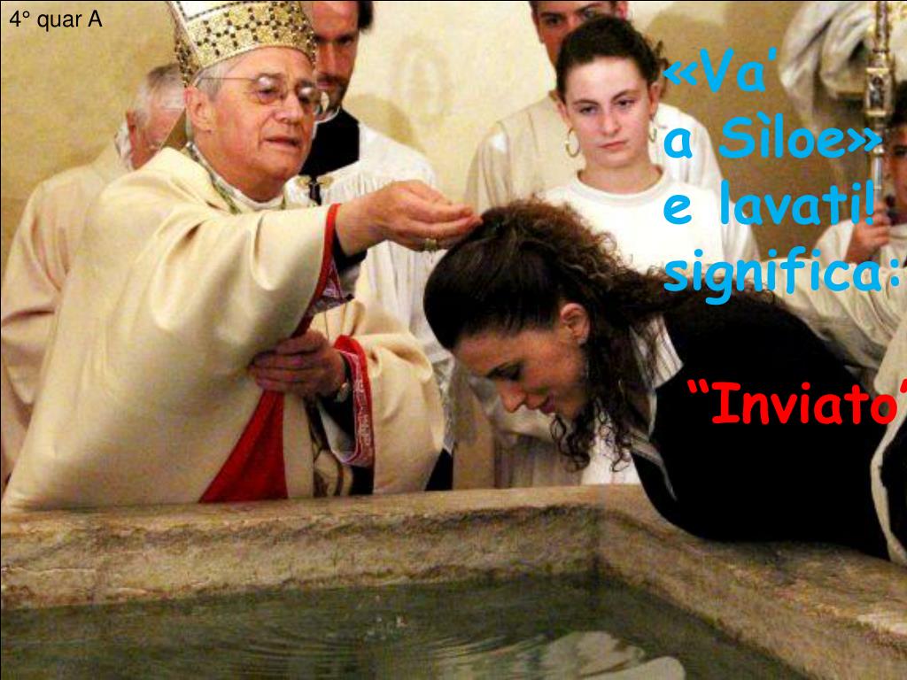 4° quar A. «Va’ a Sìloe » e lavati! significa: “Inviato”. . Vangelo di Giovanni. In quel tempo, Gesù passando vide un uomo cieco dalla nascita; . e i suoi discepoli lo interrogarono: « Rabbì , chi ha peccato, lui o i suoi genitori, perché sia nato cieco?». Rispose Gesù: