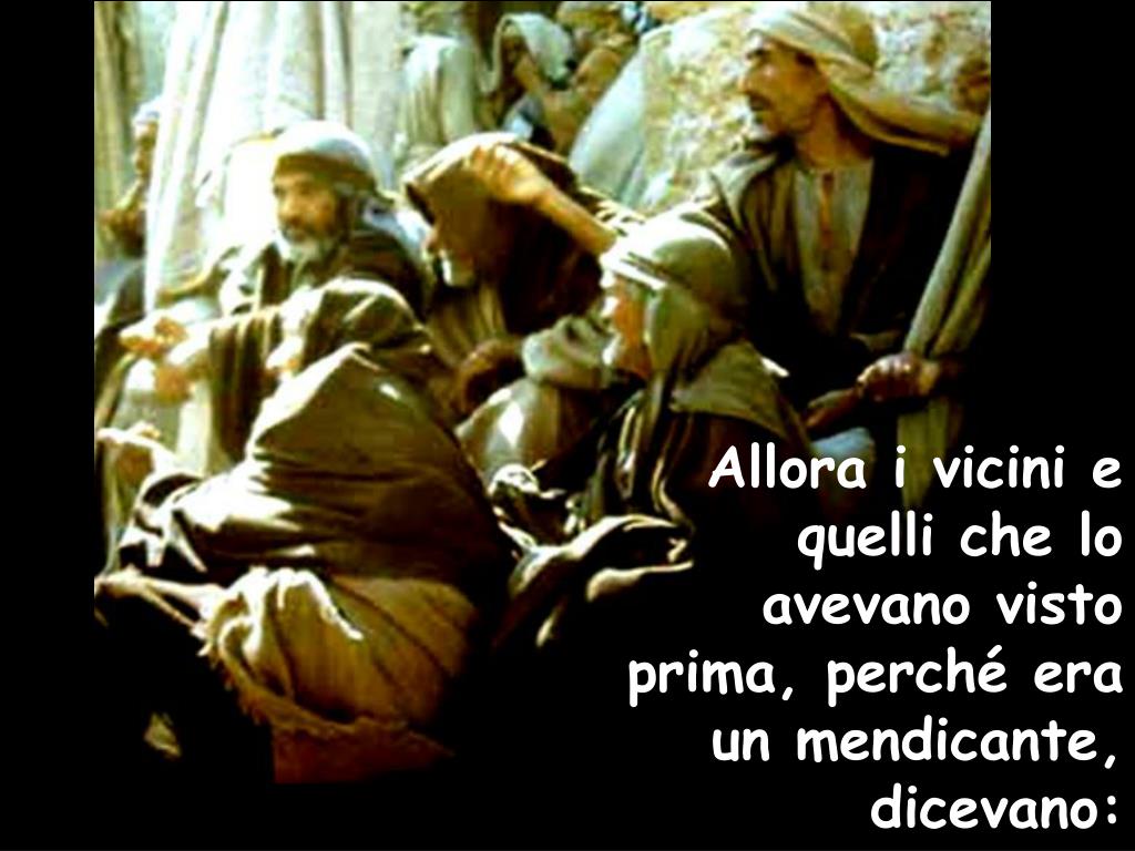 Allora i vicini e quelli che lo avevano visto prima, perché era un mendicante, dicevano: