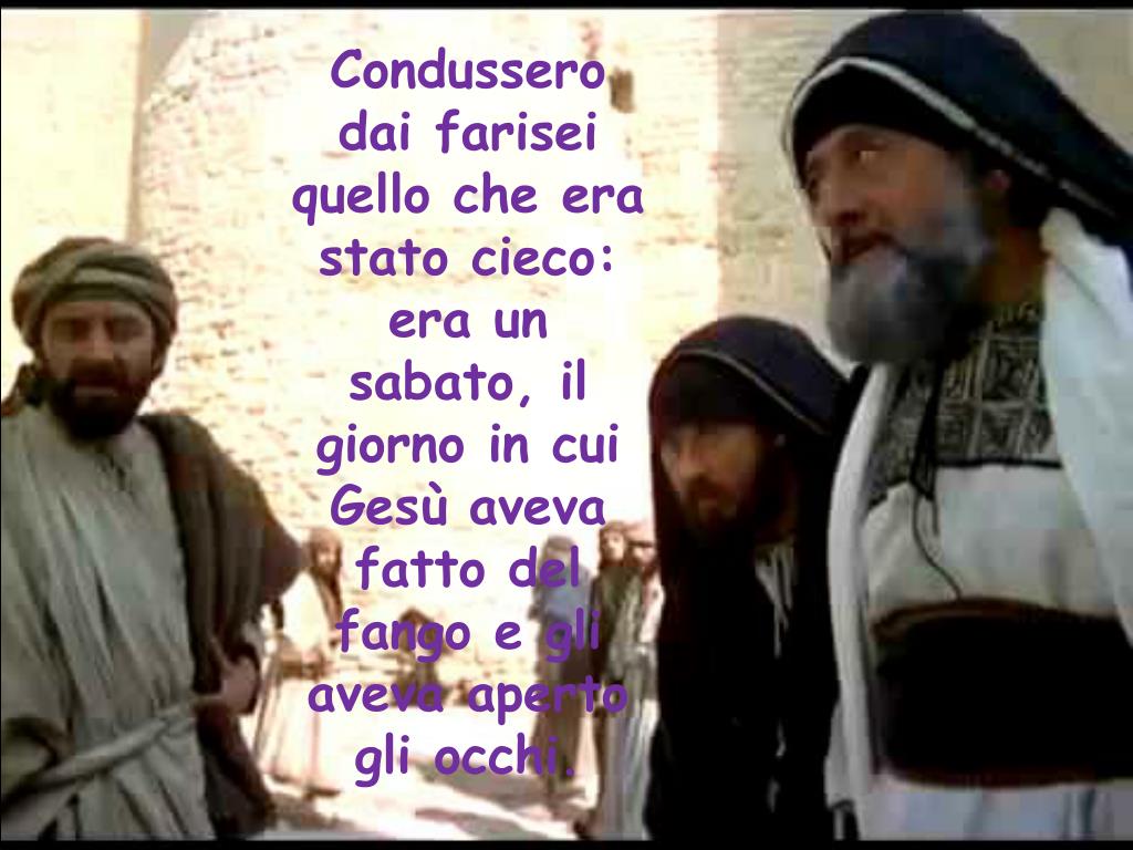 Condussero dai farisei quello che era stato cieco: era un sabato, il giorno in cui Gesù aveva fatto del fango e gli aveva aperto gli occhi.