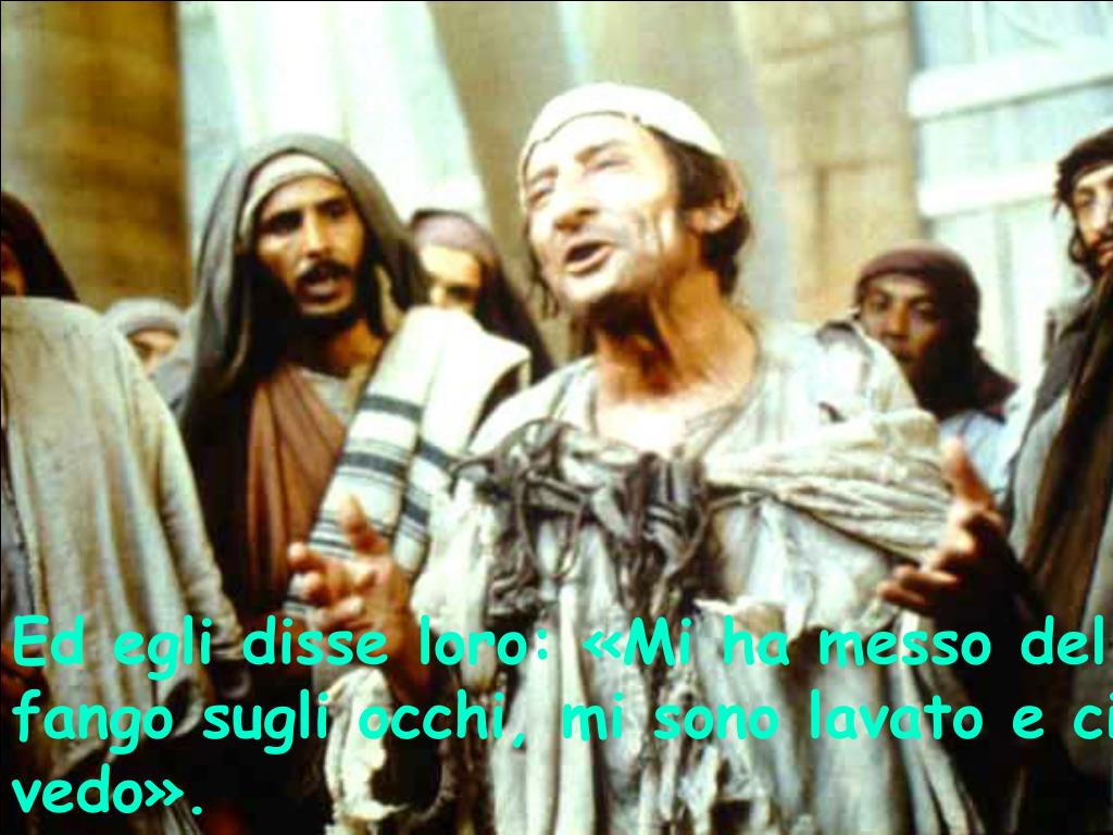Ed egli disse loro: «Mi ha messo del fango sugli occhi, mi sono lavato e ci vedo».