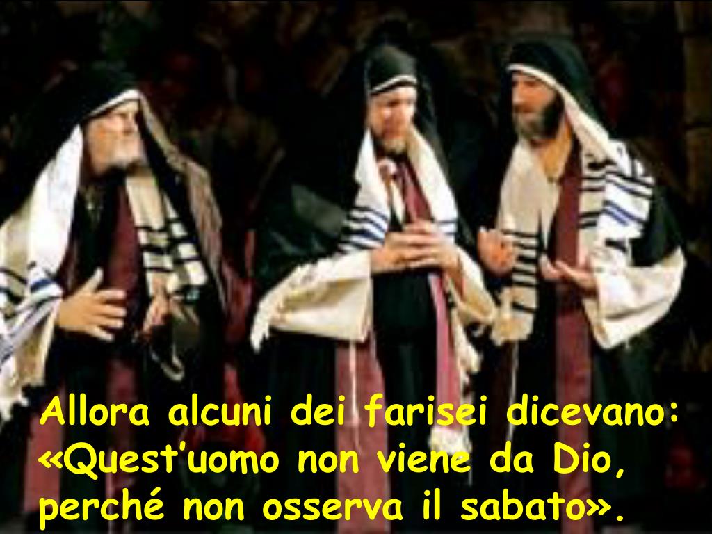 Allora alcuni dei farisei dicevano: «Quest’uomo non viene da Dio, perché non osserva il sabato».