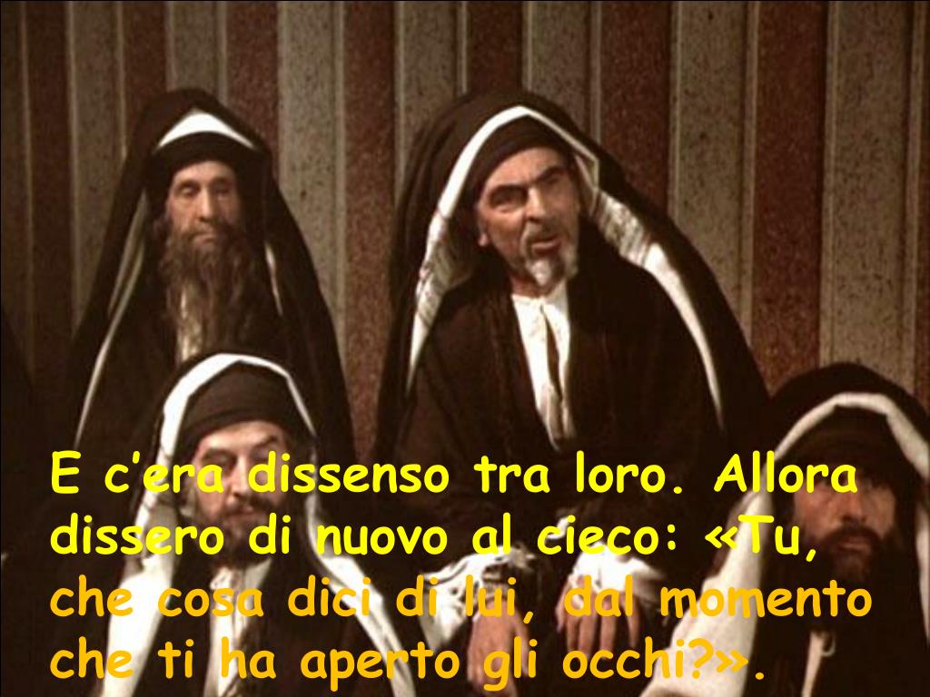 E c’era dissenso tra loro. Allora dissero di nuovo al cieco: «Tu, che cosa dici di lui, dal momento che ti ha aperto gli occhi?».
